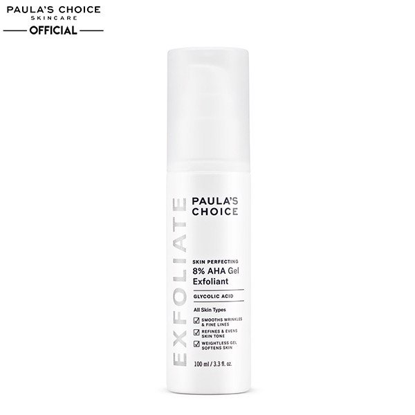 Gel Tẩy Tế Bào Chết Hóa Học Dưỡng Da Chuyên Sâu Paula's Choice Skin Perfecting 8% AHA Gel Exfoliant là sản phẩm loại bỏ tế bào chết hoàn chỉnh không chà xát làm tổn thương mà loại bỏ tế bào da chết tích tụ một cách nhẹ dịu tự nhiên với công thức gel siêu nhẹ cung cấp hydrat hóa ổn định và cải thiện đáng kể sự mịn màng của da.